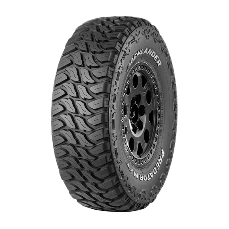 Llanta M/T (Terreno Lodoso), Diseño de banda de rodamiento con amplia separacion entre tacos, mejorando la disipacion de calor y la autolimpieza. Mejora la traccion de la llanta. Costado letra blanca.